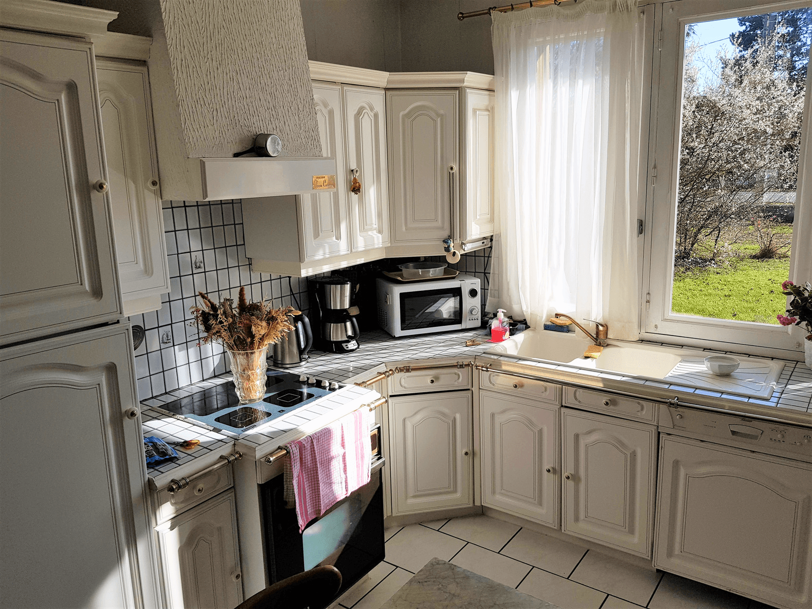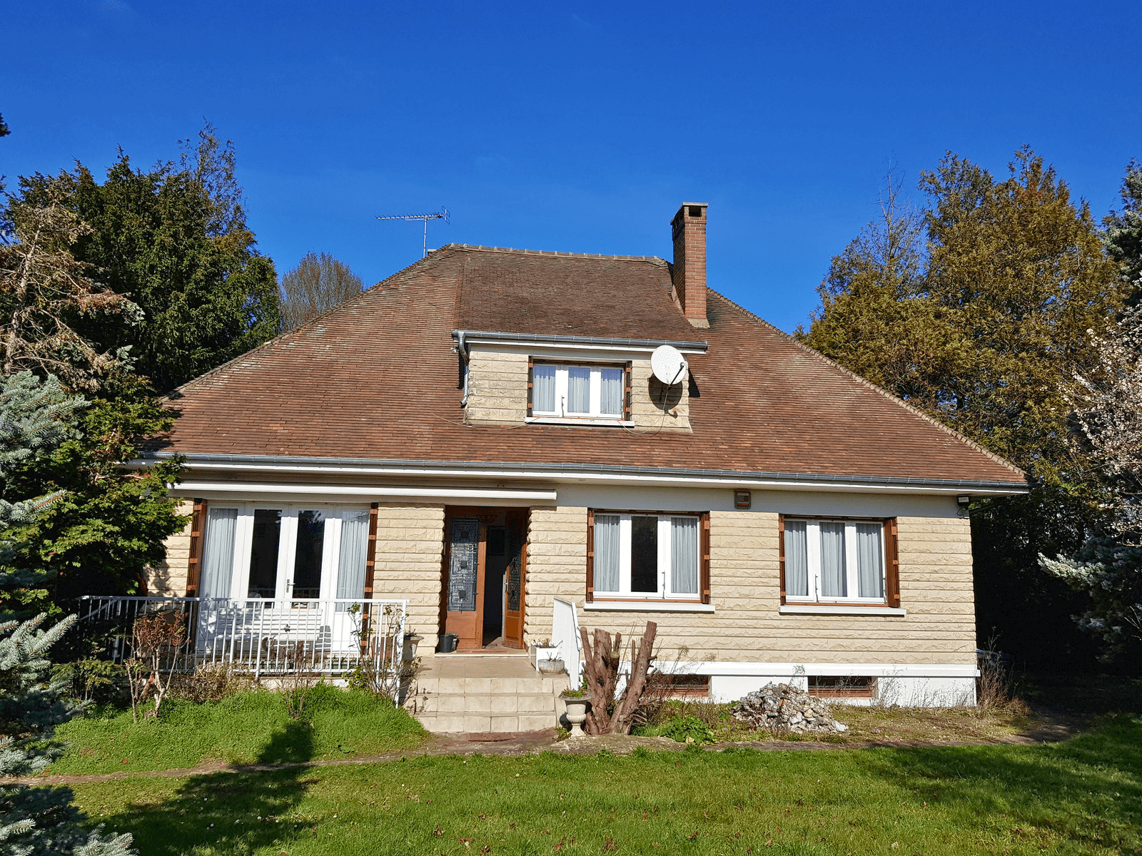 Grande maison familiale , sur un terrain clos et arboré d’environ 3120 m2 avec une vue dégagée sur la campagne.